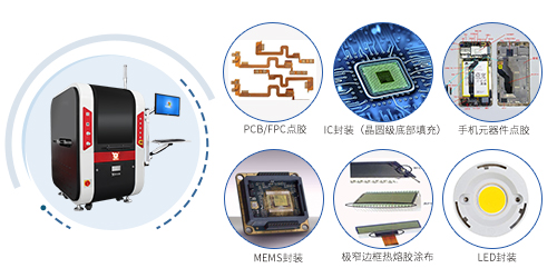 无需治具,自动智能识别定位点胶 一体化大理石平台承载 图像定位:500万像素高速相机 运行精度:±0.02mm/点胶精度:±0.1mm